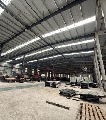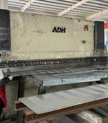 面板自動下料、沖孔壓彎、表面靜電噴涂、H型鋼自動埋弧焊接四條自動化生產(chǎn)線